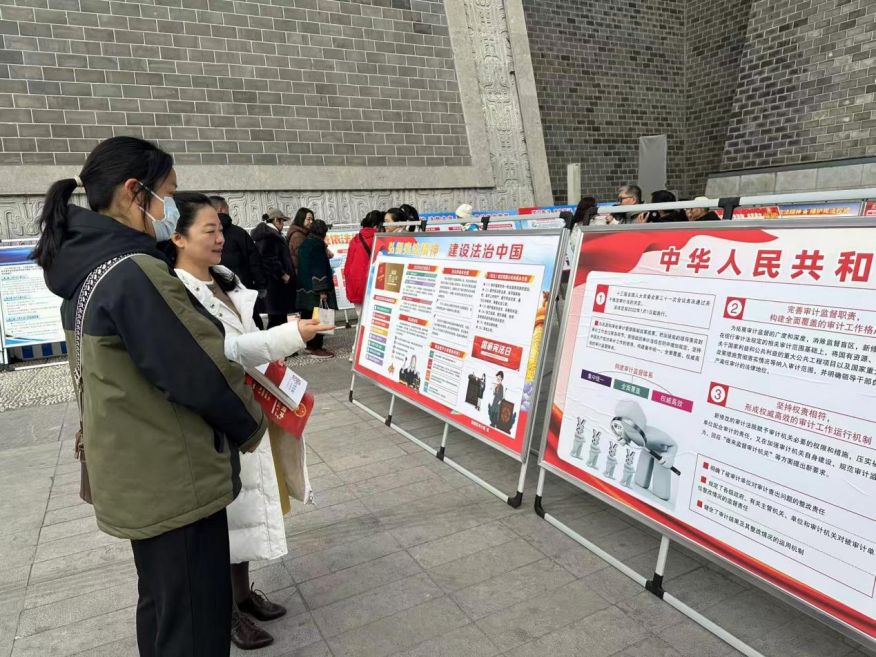 12月4日上午,魏都区审计局在曹魏古城南城门参加宪法日集中宣传活动,举办宪法和审计法宣传展。通过设立宣传展板、发放宣传资料、现场提供咨询、普法问答等多种形式,向群众解读《中华人民共和国宪法》、《中华人民共和国审计法》及其他法律法规。展板内容紧扣宪法核心要义,同时结合审计工作实际,清晰展示审计机关的职责权限与程序要求。图文并茂的版面吸引了众多群众驻足观看,引导群众自觉学法、知法、懂法、守法、用法,营造和谐文明的社区风尚和法治氛围,推动宪法至上、守法光荣的理念深入人心。