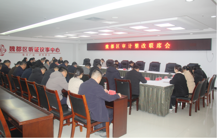 为进一步贯彻落实习近平总书记关于审计整改工作的重要指示批示精神和省委、市委关于审计整改工作的部署要求,扎实推进审计整改工作,12月24日上午,魏都区召开了审计整改工作联席会议,会议由区委常委、常务副区长徐光主持并讲话,区审计整改工作联席会议成员单位,以及有关审计发现问题责任单位负责同志参加会议。