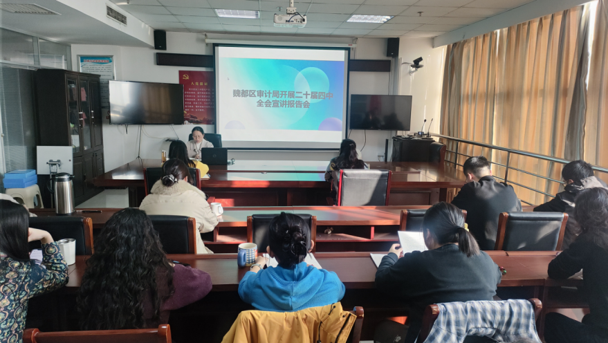 局党组书记、局长石艳娜同志以“深入学习贯彻党的二十届四中全会精神,为经济社会高质量发展贡献审计力量”为主题,围绕党的二十届四中全会精神的重大意义、主要内容、审计机关贯彻落实情况和魏都审计在“十五五”时期的发力方向等四个方面,结合审计工作实际作了深入系统的阐释。就下一步审计工作,会议要求:一是提高政治站位,深刻领会二十届四中全会的核心要义;二是聚焦主责主业,推动全会精神落地见效;三是强化自身建设,锻造政治过硬审计铁军。