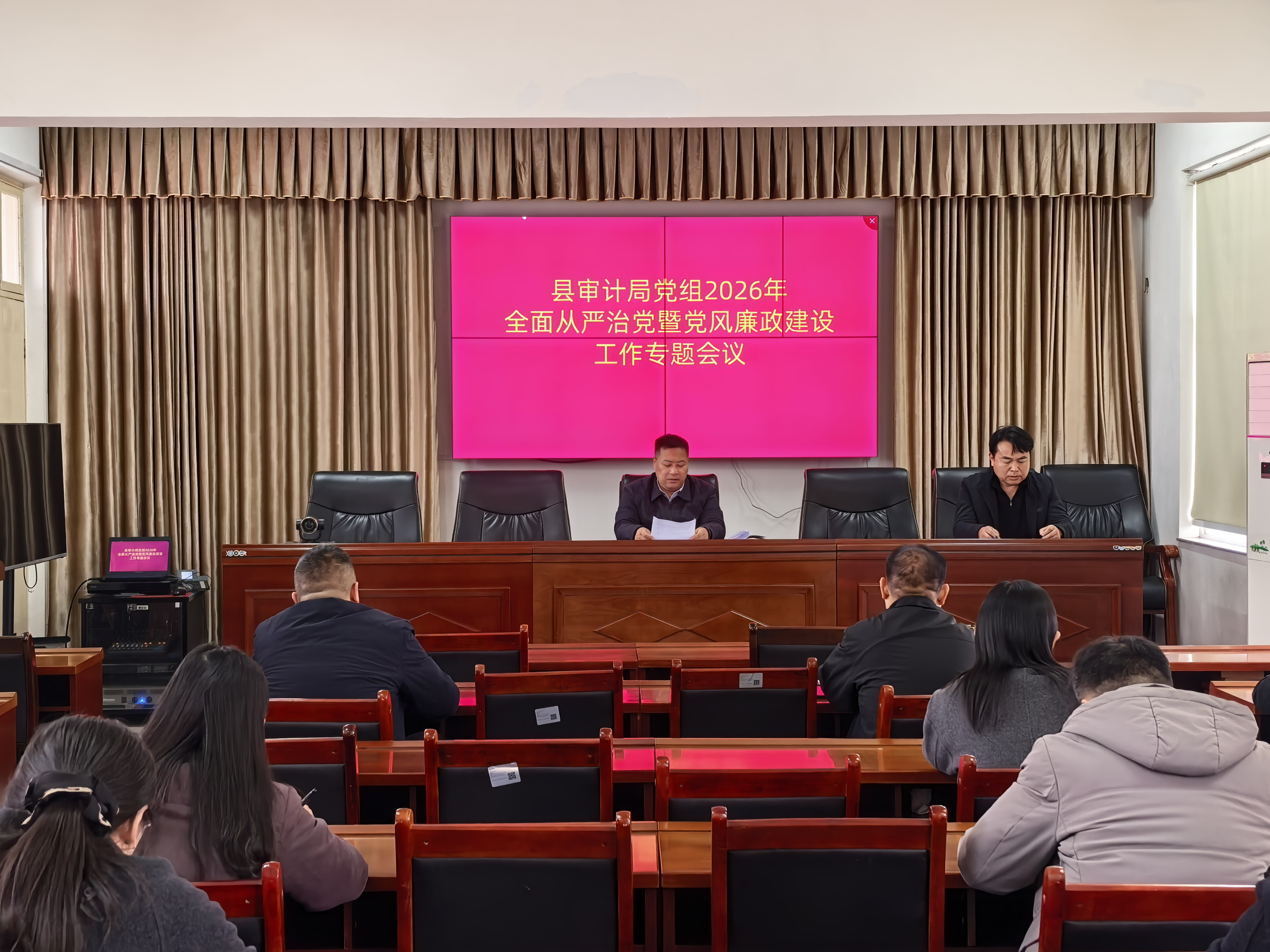 会议强调,2026年是中国共产党成立105周年,是“十五五”开局之年,改革发展稳定任务艰巨繁重,这些都对审计工作提出了新的更高要求。一是要肯定成绩,增强做好党风廉政建设的信心决心。审计局干部职工要深刻认识审计机关做好党风廉政建设工作的重要性,以高度的政治责任感、一刻也不停歇的紧迫感推动党风廉政建设工作再上新台阶;二是要聚焦重点,纵深推进党风廉政建设工作开展。审计局党组和审计机关干部职工要坚持和加强党的全面领导,以树立和践行正确政绩观为引领,一体推进不敢腐、不能腐、不想腐,推动全面从严治党向纵深发展;三是要强化保障,夯实做好党风廉政建设工作基础根基。党风廉政建设是一项长期的政治任务,是从严管党治党具体要求,要坚定不移、持之以恒、不折不扣抓好贯彻落实。(起草人:张晗 审核人:骆俊锋)